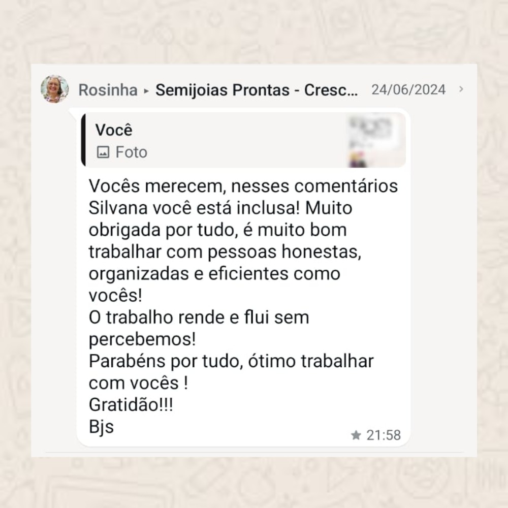 Faça parte do nosso Grupo VIP de Compras e tenha acesso a lançamentos, ofertas e peças selecionadas, sem precisar comprar grande quantidade.